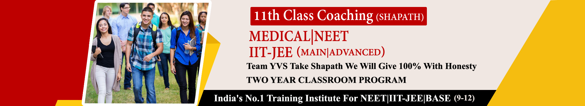 This course address the requirements for multiple competitive exams including MEDICAL|IIT-JEE a major portion of the competitive exams syllabus is covered in the class 11th itself to ensure adequater time for revision and testing. This course compliments 12th preparation. For this reason, most of the Y.V.S MEDICAL & IIT-JEE Students perform will in competitive exams as well as in 12th board exams.